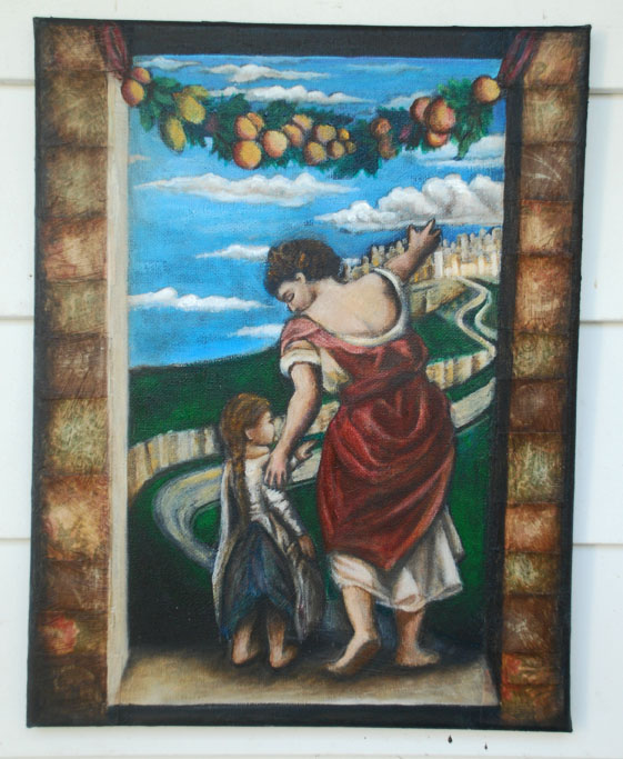And then on to one of our favorite places to go for lunch in town.....Boulangerie. They have fabulous sandwiches, fresh breads, desserts, etc. We just got a cup of coffee and a fresh baguette, which we sliced and put cheese, cilantro and tomato slices on when coming home. And I will show you my piece I'm working on now...I'm not done, but hope to be later today. I'm just posting the top part of it right now, as I'm pretty much done with that area. Do you like her so far?